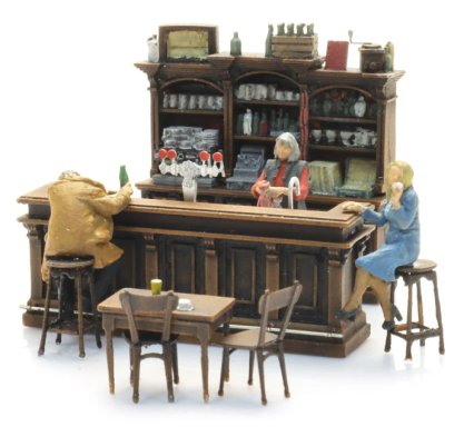387.692 Spoor HO, 1/87, Café-interieur met 3 figuren.
